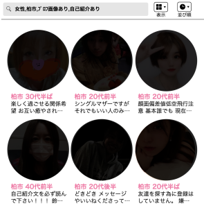 ちなみに柏で検索すると、こんな感じで女性がたくさん出てきました。